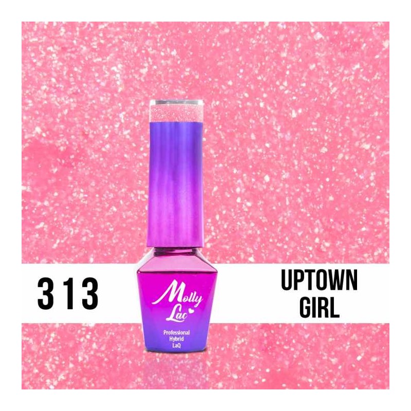 313. UPTOWN GIRL - Cukierkowy odcień różu z cudownie migoczącymi drobinami. Dopraw swą stylizację odrobiną blasku i ciesz się niebanalnym rozwiązaniem swojego manicure.