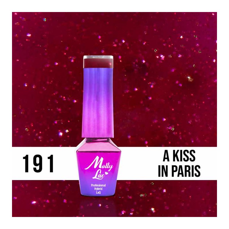 191 - A Kiss in Paris (z drobinką) - Nieoczywisty, bordowy odcień z imponującymi drobinkami srebra i czerwieni.