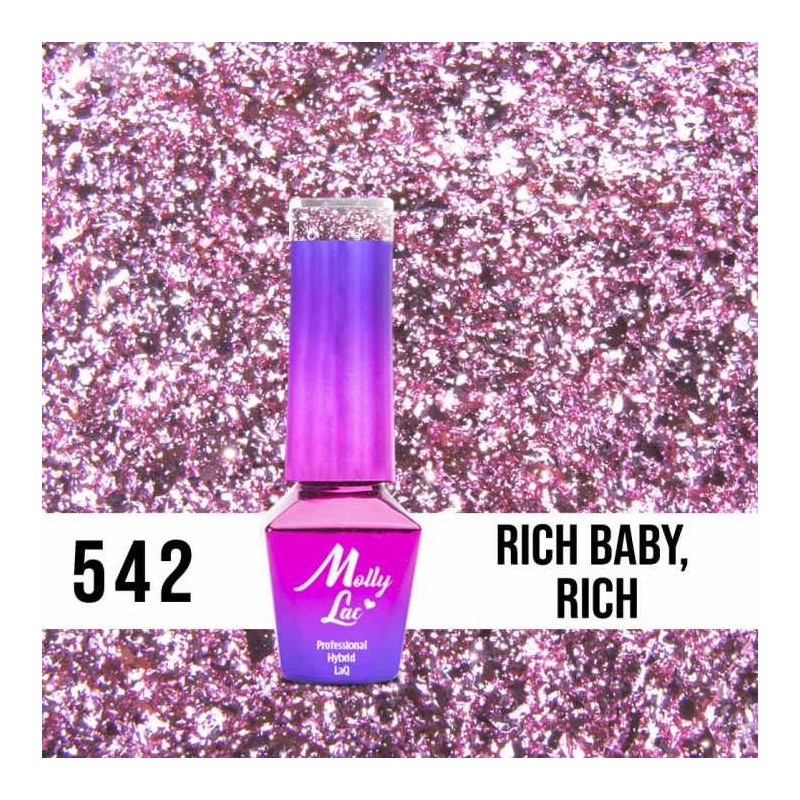 542. RICH, baby RICH to ciekawy kolor różu z zatopionymi srebrnymi drobinami. Kto powiedział, że nie możesz świecić każdego dnia?