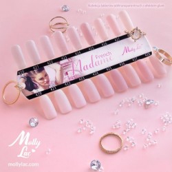 Madame French to kolekcja 9 delikatnych, półtransparentnych lakierów hybrydowych do french manicure. Aż osiem spośród nich zawiera delikatne drobinki, połyskujące dyskretnym blaskiem w słońcu.