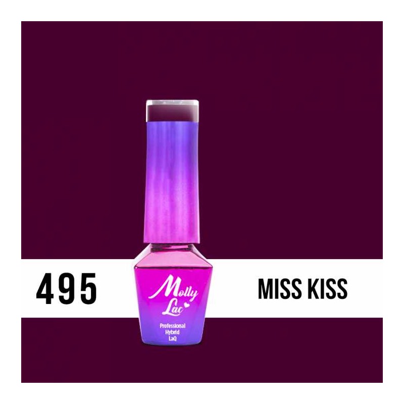 495 Miss Kiss to wieczorowy, nasycony odcień bordo z kroplą fioletowo-fuksjowego tchnienia. Jest idealny do stylizacji okresu jesiennego lub jako element stylizacji na inny sezon roku, gdzie nie będzie dominował. Miss Kiss to kolor pocałunków nocą i niewyczerpanych pokładów fantazji.