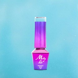 Jeśli potrzebujesz zastrzyku słodkości – znajdziesz go w pełnej łakoci kolekcji lakierów hybrydowych Bonbons od Molly Lac. Wyjątkowo cukierkowa kolekcja o nazwie zaczerpniętej z języka francuskiego Bonbons (znacz. Cukiereczki) to różnorodność pasteli z delikatnymi drobinkami. Wszystkie kolory z kolekcji są półtransparentne, dlatego sprawdzą się idealnie do wykonania french manicure z efektem bling lub będą doskonałe jako samodzielne kolory. Na podkładzie z białego lakieru hybrydowego będą całkowicie kryjące.