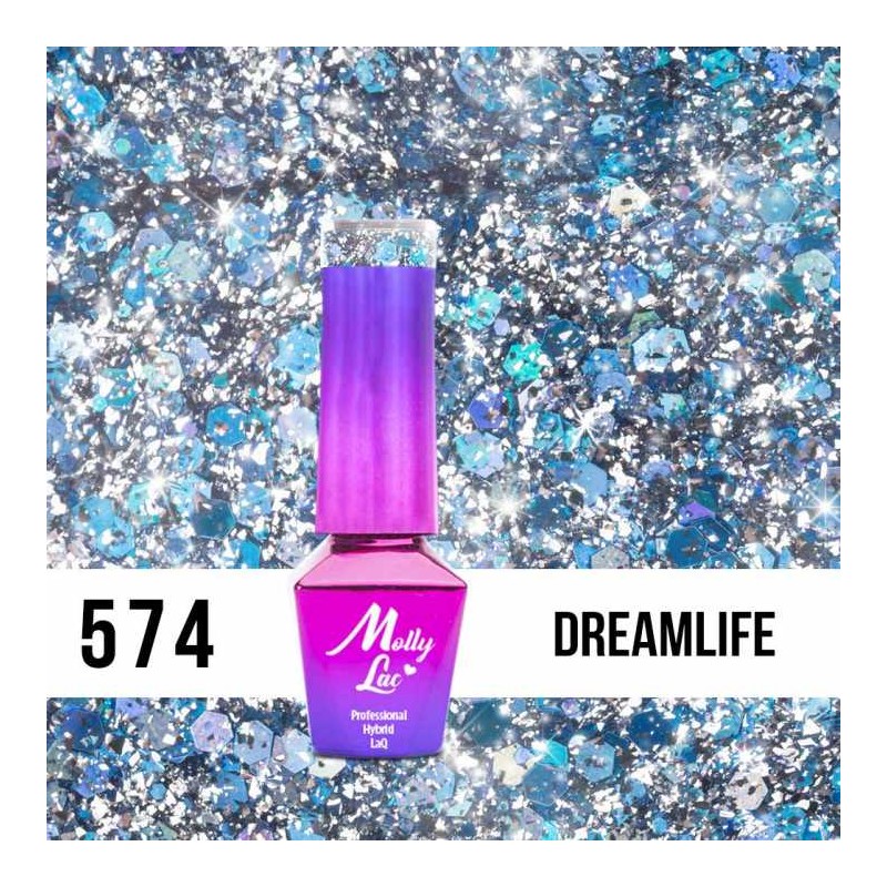 574 Dreamlife Królewski błękit z mocną opalizującą drobiną. Zanurz się w otchłani miliona iskrzących drobinek! Idealna proporcja maluteńkich i większych cząsteczek to gwarancja stylizacji idealnej!