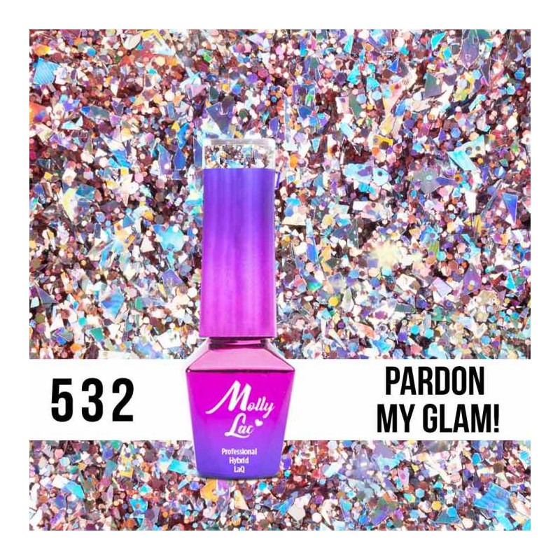 532 Pardon my glam! – Kobiecy i elektryzujący lakier hybrydowy, który łączy w sobie srebrzyste drobinki z delikatnością różowego brokatu. Ta mieszanka to zdecydowanie recepta na Twój sukces!