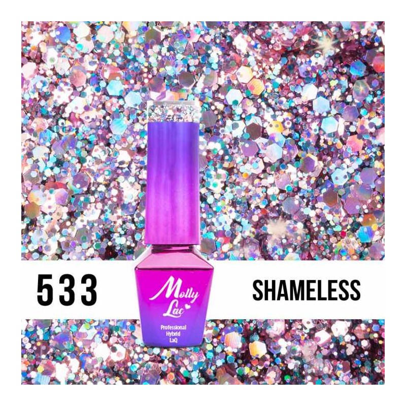 533 Shameless – Nie tylko podkreśli Twoje piękno, ale także doda Ci stanowczości! Taki jest właśnie fioletowo srebrzysty lakier hybrydowy z mocnym holograficznym blaskiem.